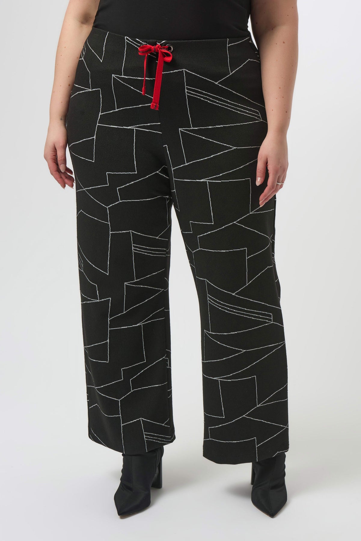 Boasting an intriguing abstract print and a refined simplicity, these jacquard knit pull-on pants add an effortlessly chic touch to any wardrobe. The wide-leg silhouette drapes elegantly, creating a fluid, graceful movement with every step. Gunmetal eyelets with a tie detail at the waist enhance the modern appeal, while the overall design exudes understated sophistication.